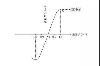通過恒定電流(額定電流)激勵馬達的同時,在馬達軸上施加外力形成角位移,角位移正常與矩t的關(guān)系稱為角度-矩特性或正常(圖1)。