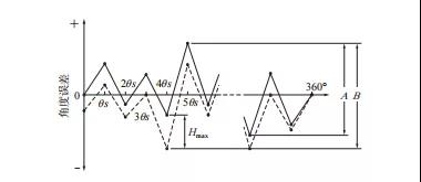 ◎步進角誤差(相鄰角誤差)與靜止角誤差相同,使馬達旋轉(zhuǎn)一周,測量每次步進轉(zhuǎn)中角位置的理論值和實際值的偏差,取其中正負雙方向各自的最大角度差,即步進角誤差(相鄰角誤差)。
