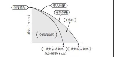 步進電機的轉(zhuǎn)速取決于驅(qū)動脈沖的頻率,因此速度-轉(zhuǎn)矩特性又稱轉(zhuǎn)矩-頻率特性。這一特性相當于普通直流電機的轉(zhuǎn)速-轉(zhuǎn)矩特性。在普通直流電機轉(zhuǎn)速-轉(zhuǎn)矩特性圖中,橫軸為轉(zhuǎn)矩,縱軸為轉(zhuǎn)速。但在步進電機中,一般橫軸為脈沖頻率,縱軸為扭矩,如圖3所示。我們可以看到一個空載啟動區(qū),對電機施加這個范圍內(nèi)的頻率和扭矩,電機可以正常啟動并同步旋轉(zhuǎn)。另外,在空載啟動區(qū)運行的馬達繼續(xù)增加扭矩和輸入頻率時,馬達可以看到不會失步的旋轉(zhuǎn)范圍。其上限頻率稱為最大響應(yīng)頻率。該特性隨著驅(qū)動電路和負荷的旋轉(zhuǎn)慣性發(fā)生了很大變化。