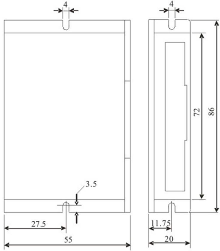 DIR-     方向控制信號:為保證電機可靠換向,方向信號應先于脈沖信號至少 5μs 建立。電機的初始運行方向與電機的接線有關,互換任一相繞組 (如A+、A-交換)可以改變電機初始運行的方向,DIR-高電平時4~5V,低電平時0~0.5V。如采用+12V 或+24V 時需串電阻。