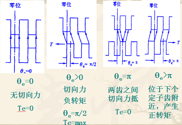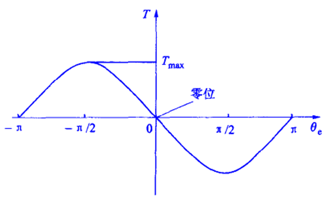 失調角——轉子偏離零位線的夾角qe,失調角是在齒距角范圍內變化的,為了表示方便,將齒距角的范圍看成2p電角度。